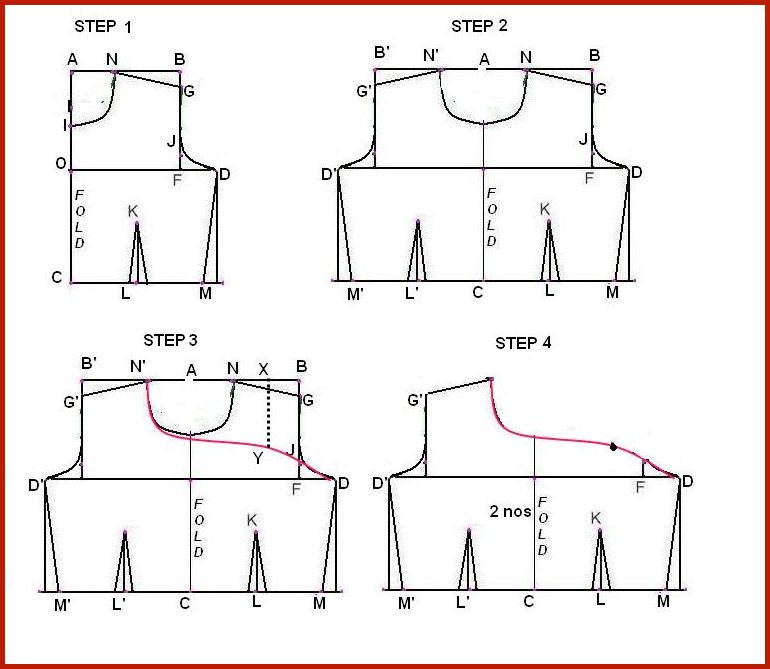 Open the fold of back and front pattern .Now let us do the necessary changes.